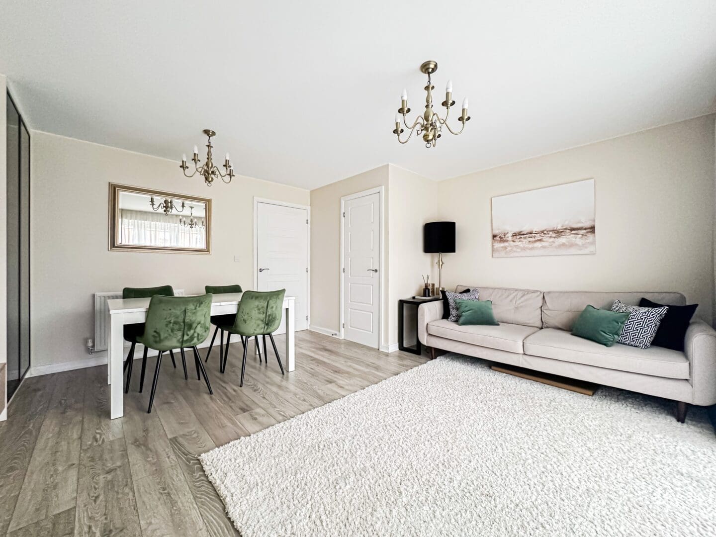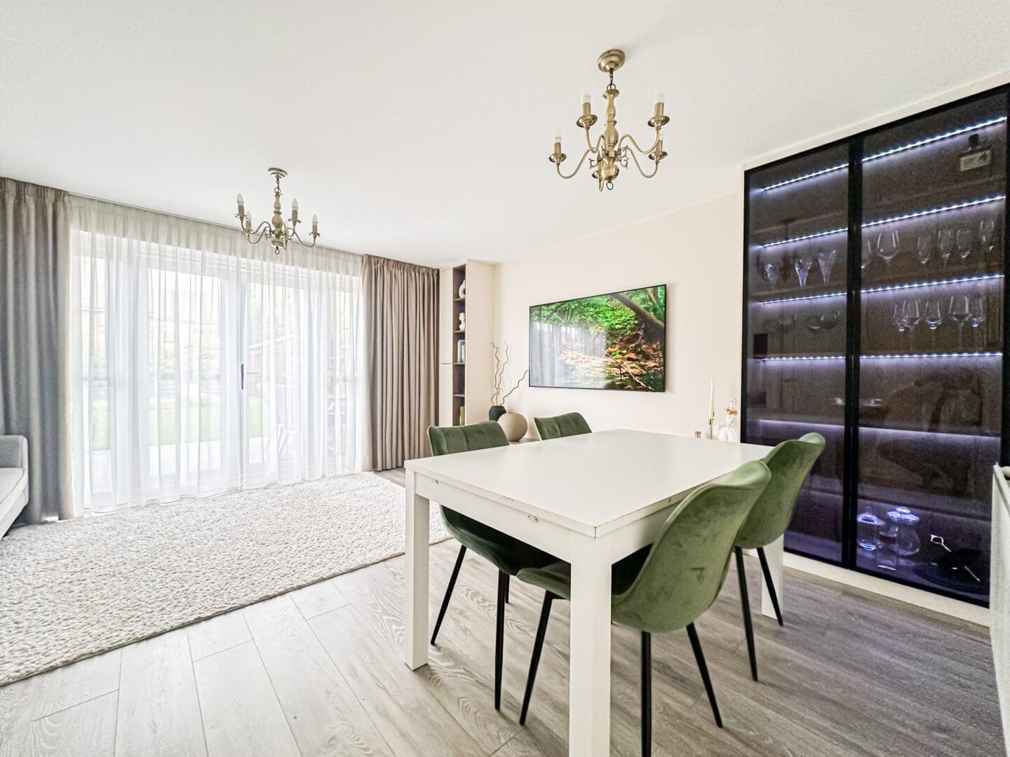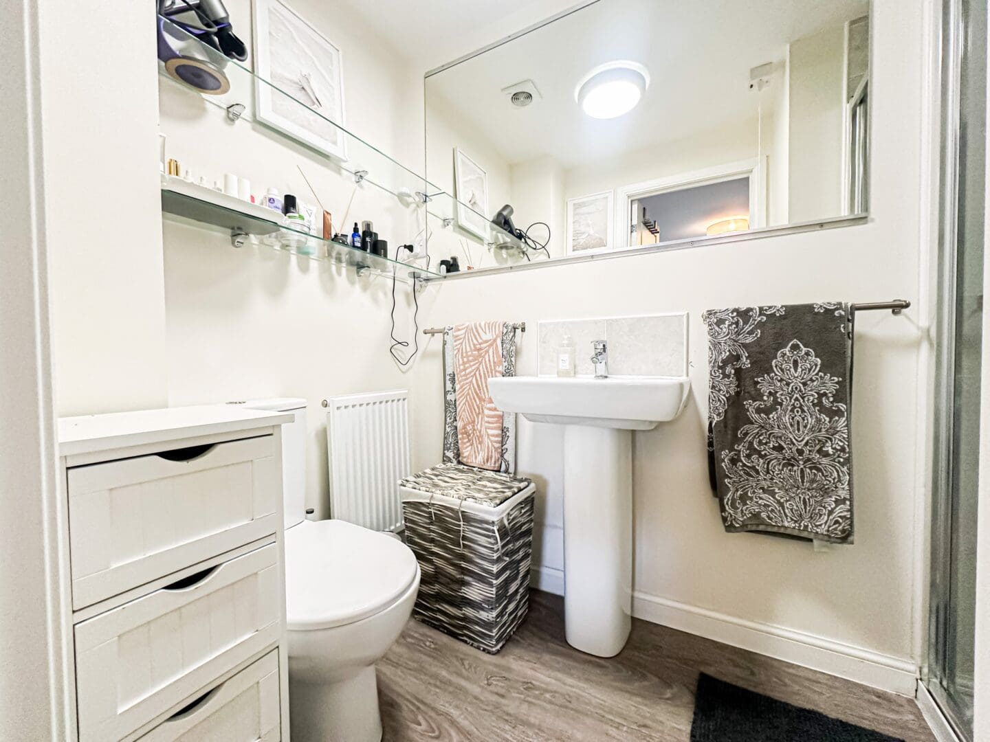 Following through the inviting entrance hall, you are led into a fitted kitchen which is complete with a range of sleek base and wall units, complementary worktops, and a selection of integrated appliances. With ample room to accommodate a dining table, this presents a delightful setting for casual dining and cooking in company. To the rear is a spacious open plan living and dining area which enjoys a set of french doors providing seamless access out to the garden and flooding the room with natural light. Finished in an elegant décor featuring attractive wood style flooring, this provides a welcoming and stylish space for both relaxing and entertaining. Concluding the ground floor is a convenient WC.