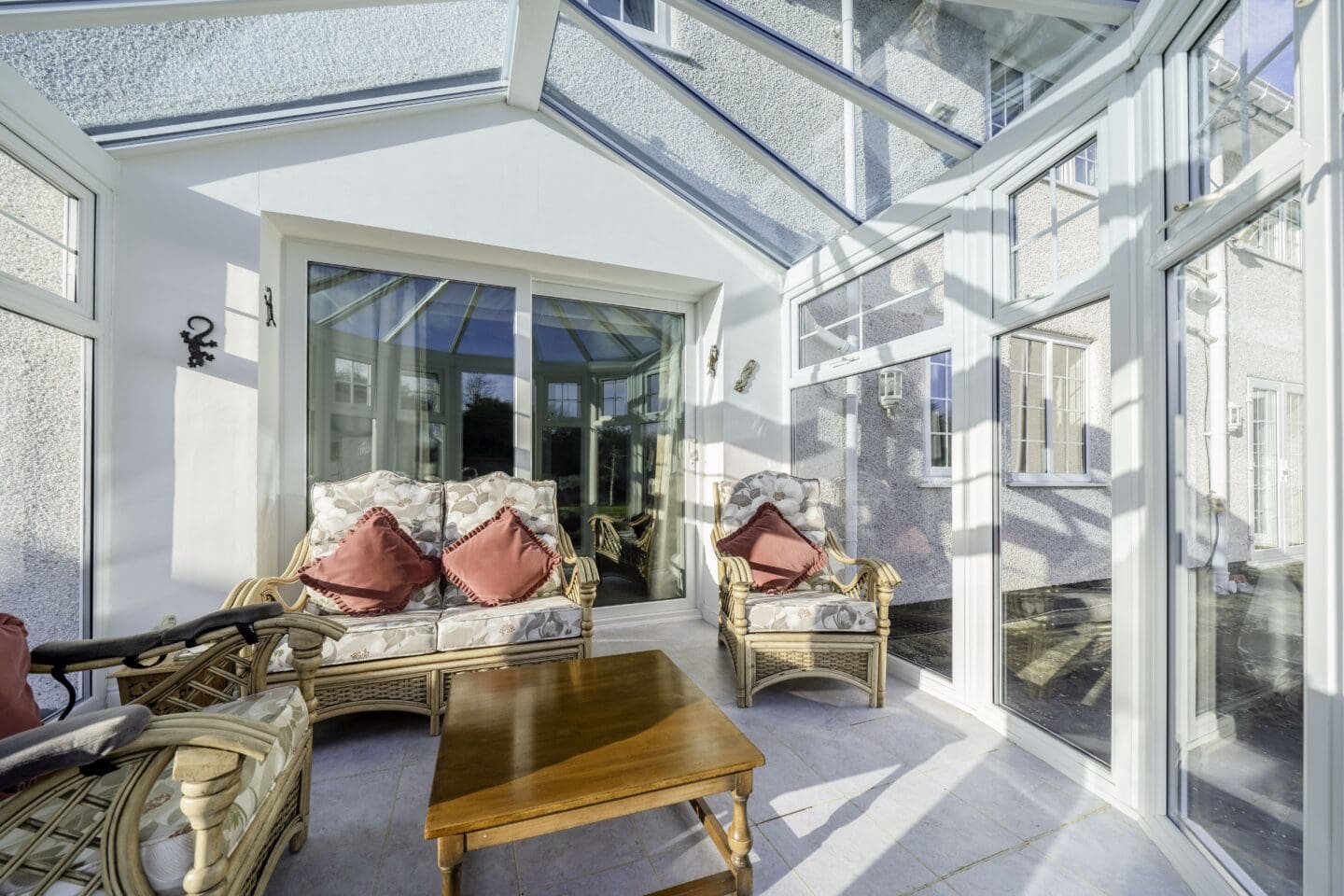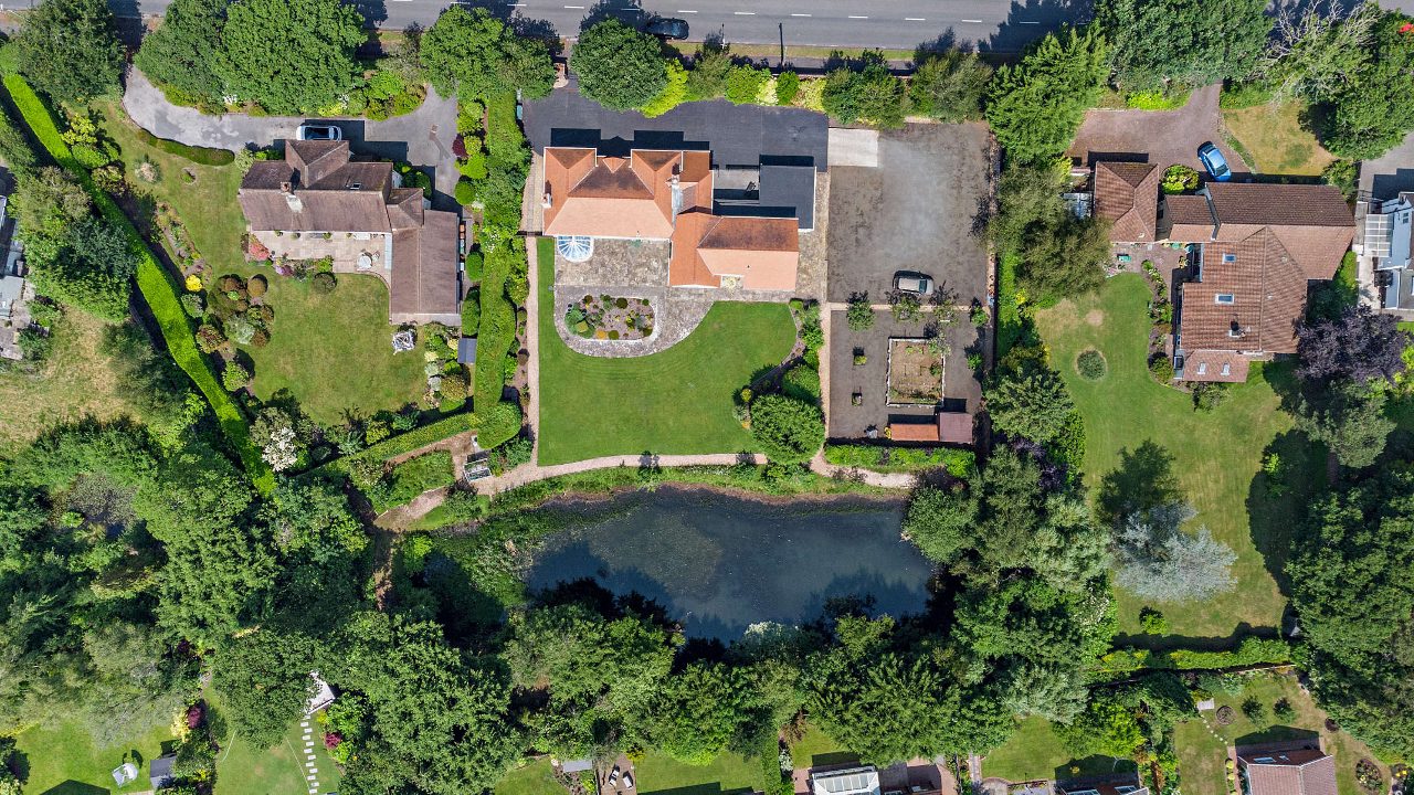 The plot encapsulates this home perfectly, set back from the road with gated access opening to ample off road parking for around 15 vehicles and a double garage. The rear garden is beautifully landscaped with sweeping lawn, patio areas and well established planting beds. The coarse fishing lake which attracts a variety of wildlife.
