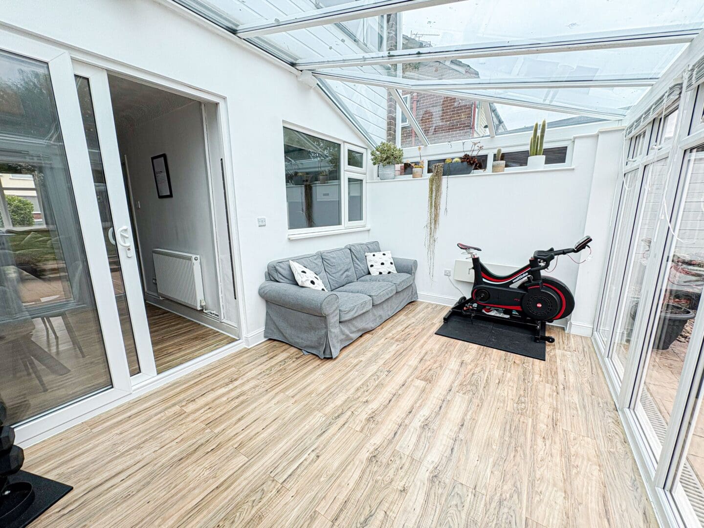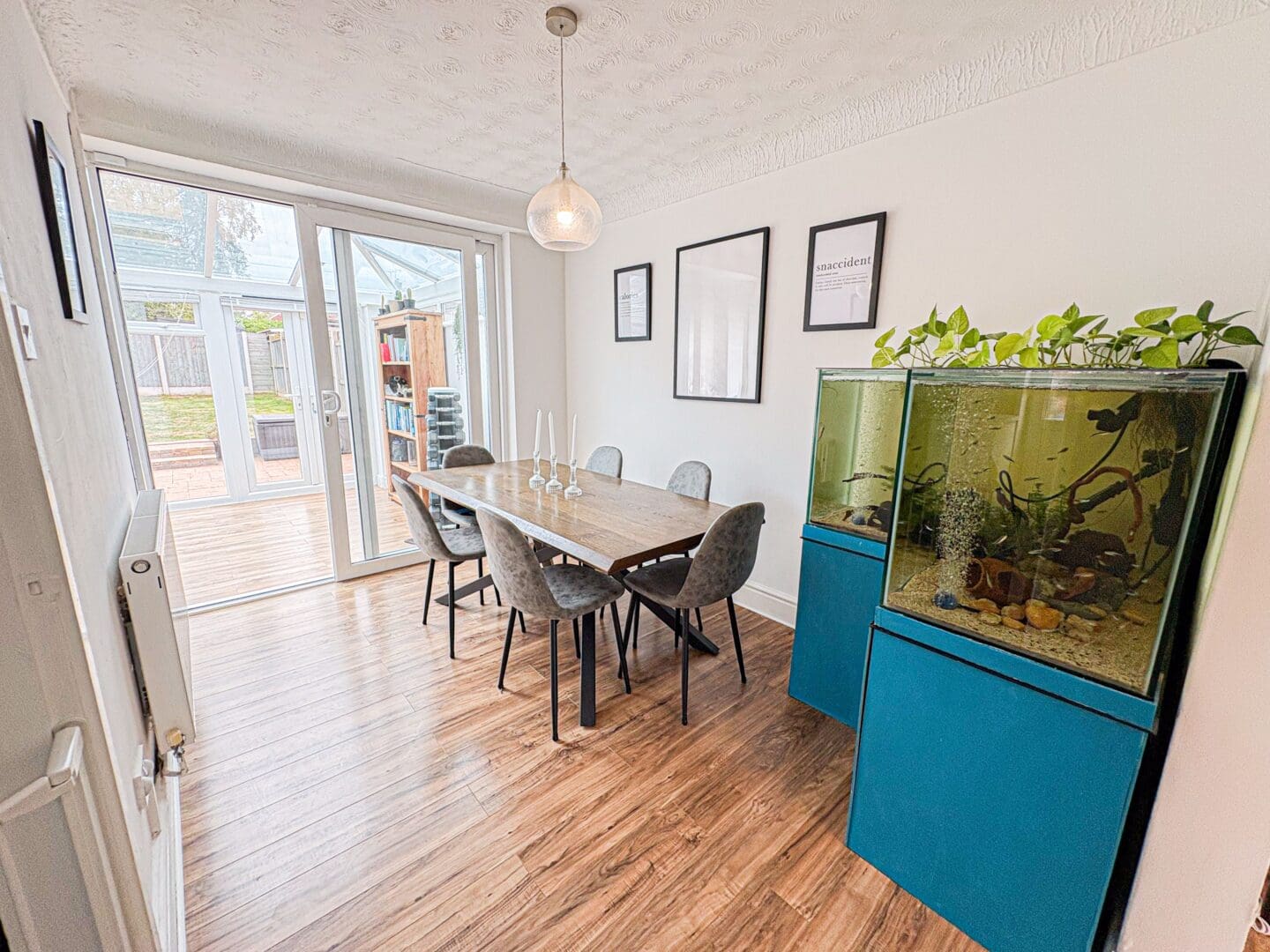 Entering via the porch, you are greeted into the property by an inviting entrance hall, leading through to a spacious family lounge, awash with natural light courtesy of a bay window. Featuring attractive wood style flooring and an eye-catching fireplace, this presents a welcoming space to relax and unwind. The lounge flows seamlessly through to a dining area which offers the ideal setting for enjoying family mealtimes, with a set of sliding doors the rear providing access into a well-maintained conservatory, which offers a charming additional sitting area where views of the garden can be enjoyed. Concluding the ground floor is a modern kitchen complete with a range of fitted units.