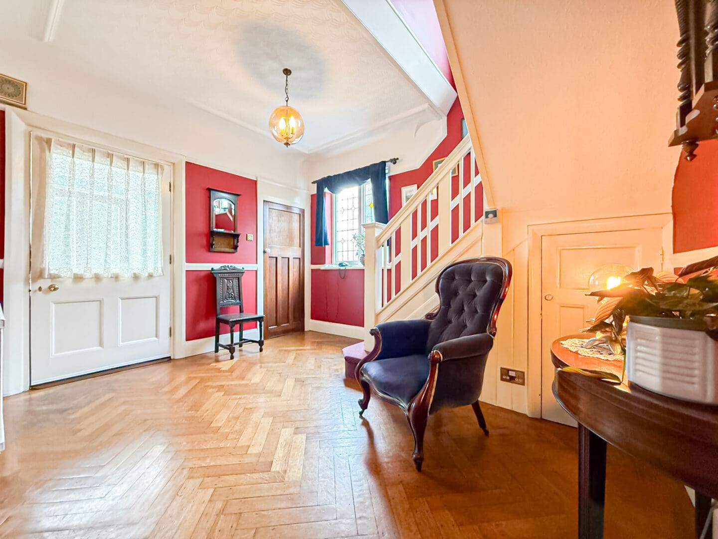 This magnificent four bedroom detached residence, standing proudly on Woolton Road in the highly sought-after suburb of Childwall, L16, is proudly showcased to the sales market by appointed agents Move Residential. Occupying a generous plot, the property boasts an imposing frontage and offers expansive living proportions finished to an impeccable standard throughout. This presents an opportunity not to be missed for families searching for their forever home in one of South Liverpool’s most desirable areas. Upon entering the residence you are greeted by a spacious porch that leads to a grand reception hall, boasting attractive parquet flooring as well as access to a convenient WC. From here you are led into a spacious family lounge, awash with natural light courtesy of a walk-in bay window. Beautifully finished in a neutral décor featuring an eye-catching fireplace, this presents a welcoming space to relax and unwind. This is followed by an elegant dining room which also enjoys a feature fireplace, along with a set of french doors which provide views and access out to the garden, presenting a refined setting for entertaining guests. Continuing through you will find a modern kitchen diner complete with a range of stylish fitted base and wall units, complementary worktops providing plentiful surface space, and a selection of integrated appliances. A breakfast bar provides the ideal spot for more casual dining, and with ample room to accommodate a sitting/dining area, this presents a delightful social space for cooking in company and enjoying family mealtimes. Concluding the extensive ground floor is a well-equipped useful utility room. The property continues to impress as you ascend to the first floor, where you will find four generously sized bedrooms, each immaculately presented and receiving an abundance of daylight, with the two primary bedrooms further benefitting from walk in bay windows. The master bedroom enjoys the added benefit of a three-piece ensuite bathroom, and the second bedroom also boasts a plumbed sink that could be utilised and converted to a further en-suite with the right alterations. Serving the remaining bedrooms is a modern four-piece family bathroom suite, and adding the finishing touch to the interior of this exceptional home is large loft that is ideal for storage. Externally, the property is further enhanced by a vast rear garden which provides the ultimate outdoor space for the whole household to enjoy, and benefits from not being overlooked. The huge neatly maintained lawn offers plentiful room for recreational activities, surrounded by mature trees which offer privacy and seclusion, whilst a paved patio area presents a serene spot for al-fresco dining and entertaining. To the front, and in and out driveway provides ample off-road parking and a detached garage offers additional storage space.